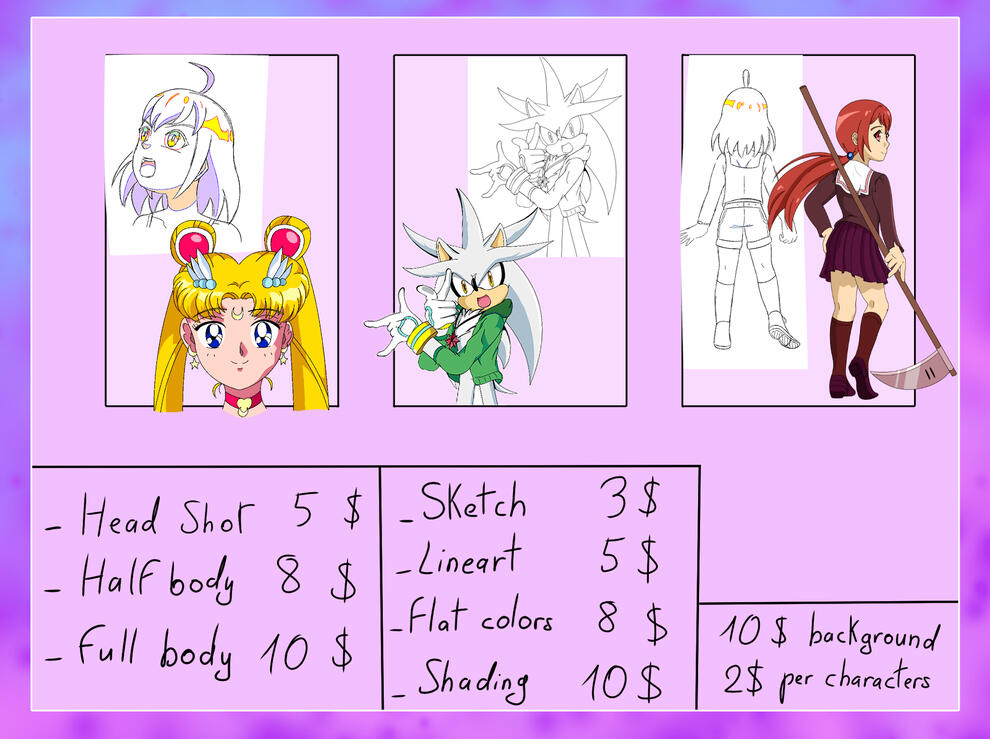 I love drawing, Sailor Moon, red/blue/teal/black/white, SEGA (Especially Sonic), Amanda the Adventurer, 2D style drawing, drawing random things, learning new drawing and animation tricks, watch cartoons/anime to analyse and learn the animation techniques.